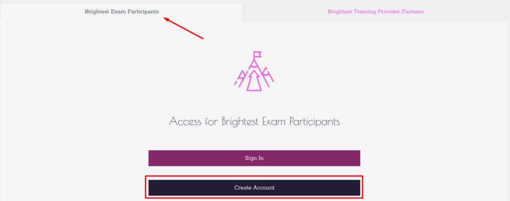 Bạn nhớ chọn tab “Brightest Exam Participants” nhé, đây là tab đăng nhập, đăng ký cho những ứng viên tham gia thi. Sau đó hãy click “Create Account”