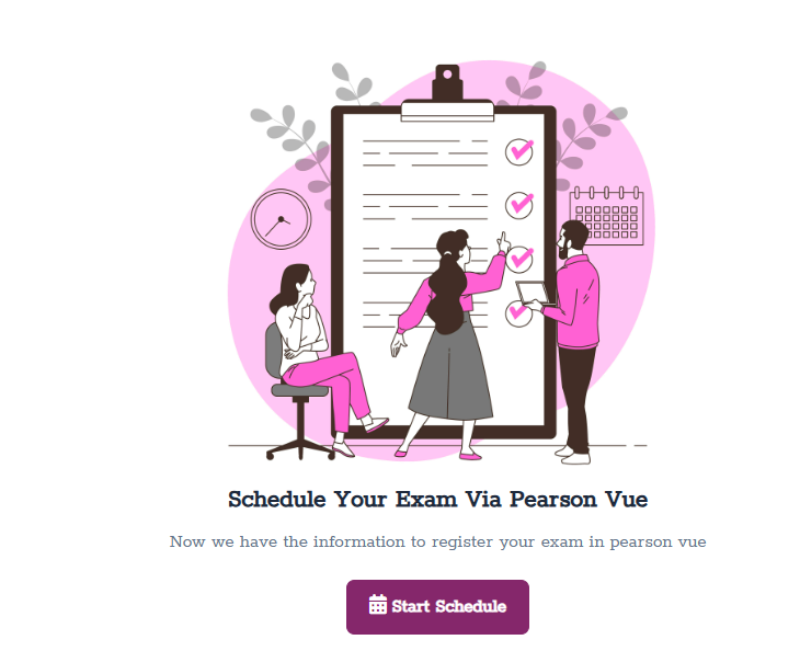 Lúc này bạn sẽ bắt đầu lên lịch cho kỳ thi của mình, hãy lick vào “Start Schedule”, bạn sẽ được chuyển sang trang của “Pearson Vue”