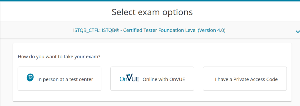 • In person at a test center: bạn sẽ đến các trung tâm thi của Pearson Vue để tham gia thi