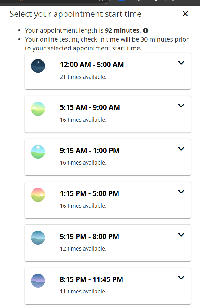 Nếu giờ thi không phù hợp với bạn hãy click vào “Explore more times” để chọn các khung giờ khác