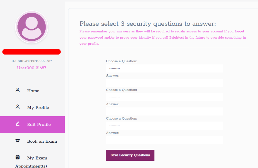 Sau khi đăng nhập, hãy đặt các câu hỏi bảo mật ở màn hình này.