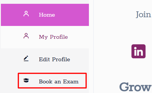 Để đăng ký kỳ thi, hãy đăng nhập vào tài khoản của bạn sau đó chọn phần “Book an Exam”
